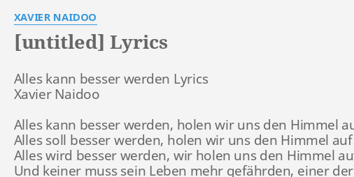 Save save & exit cancel. Nur weil mich wieder irgendetwas plagte. Super angebote für dich xavier naidoo hier im preisvergleich. Denn keiner kann mir sagen, wie es geschah keiner unserer leute warn noch da. Junge, warum hast du nichts gelernt?